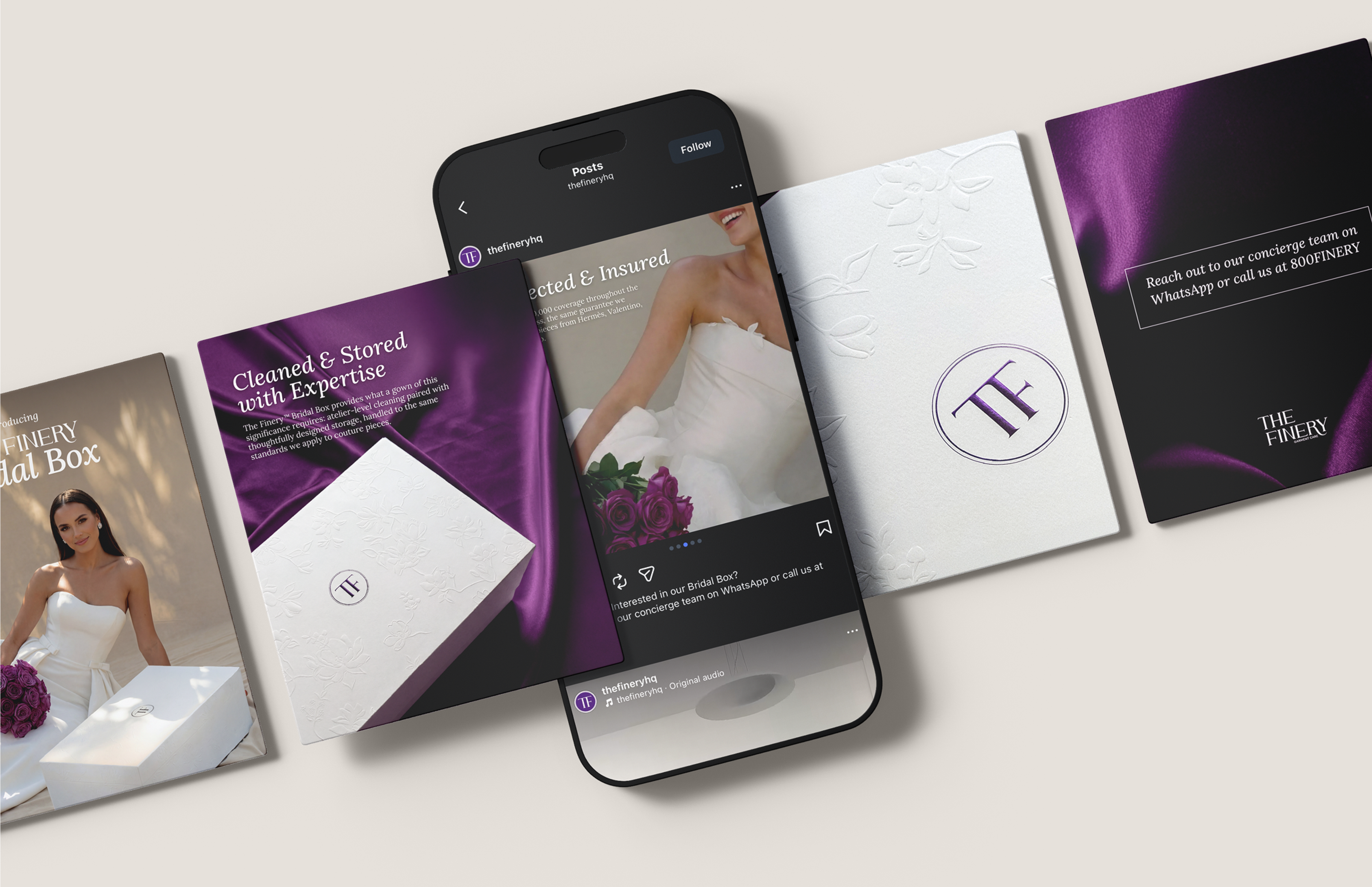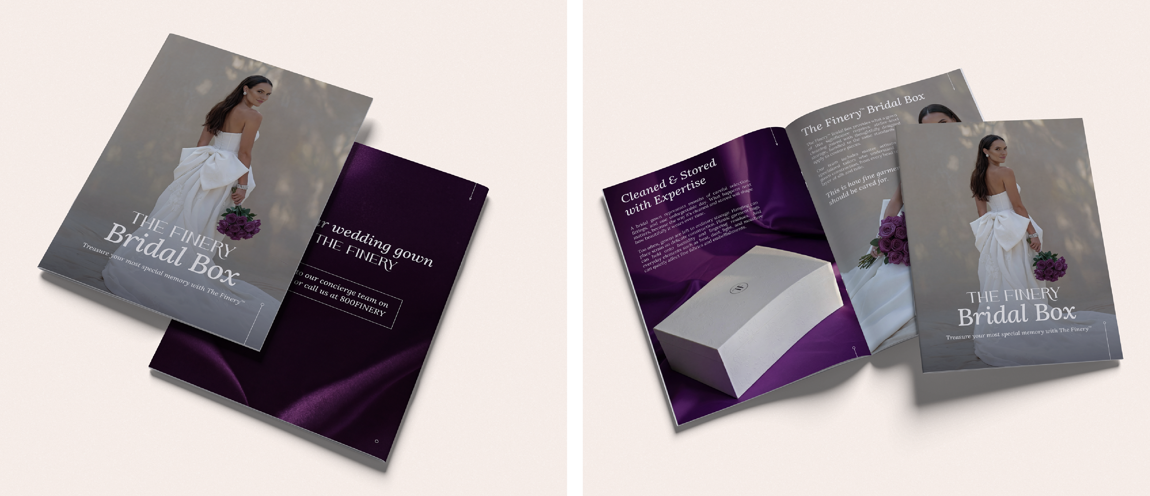Designed the box packaging, brochure, and social media launch materials for the Bridal Box; a storage solution created to protect wedding dresses after professional cleaning and help maintain their condition during storage. Work done as designer at Washmen.