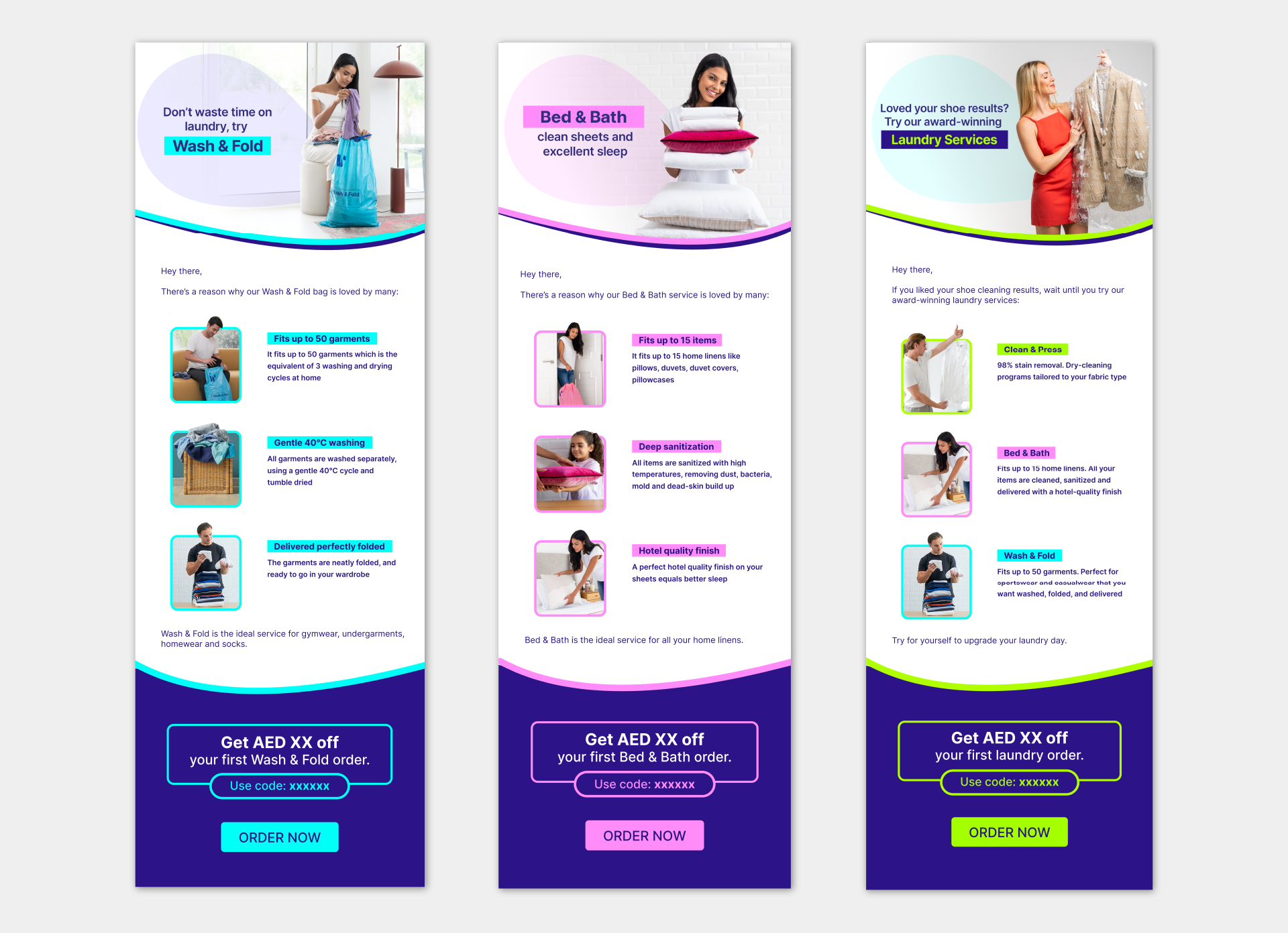 A user-focused campaign aimed at introducing existing customers to services they haven’t tried yet, using simple, educational content across app, WhatsApp, email, and push notifications. Each touchpoint highlights the benefits of different services, with optional promo versions to gently encourage first-time use.
